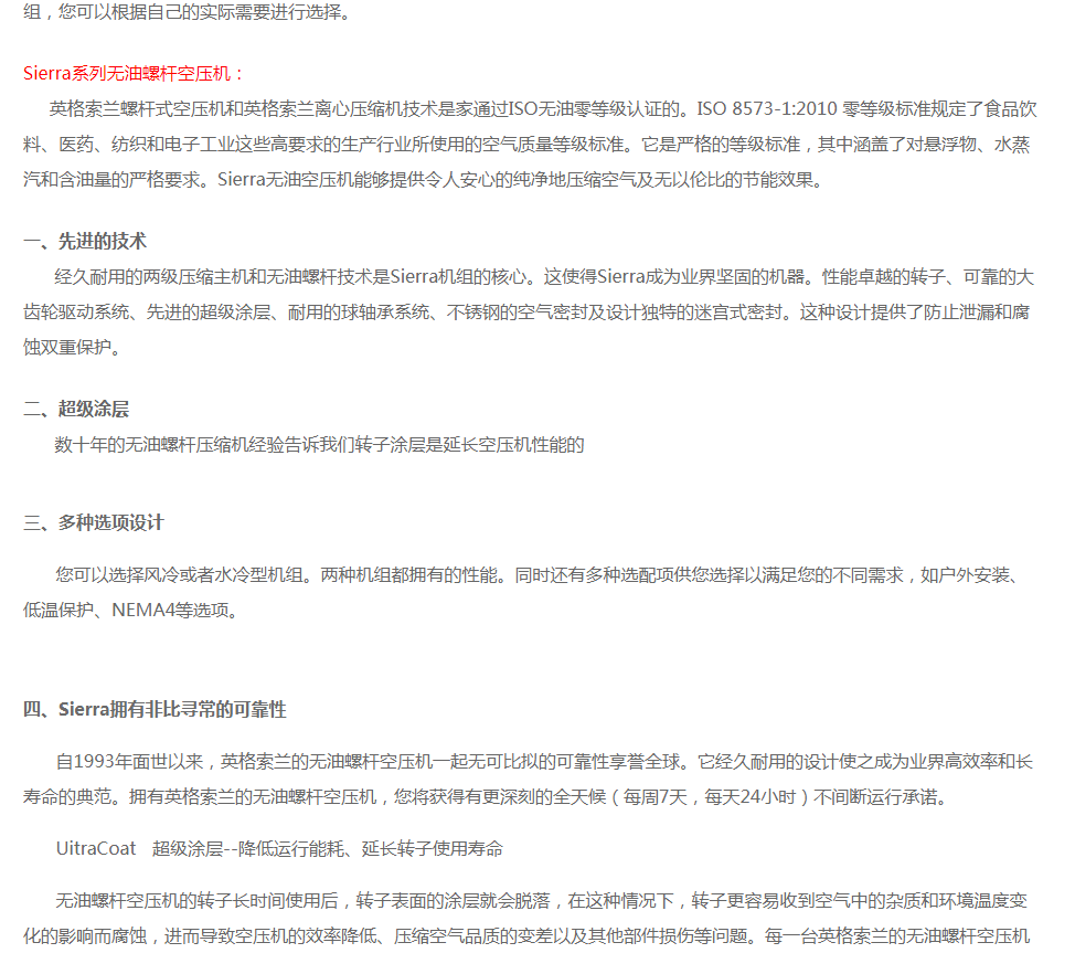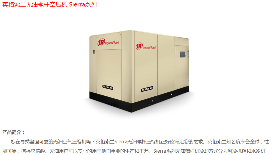 英格索蘭無油螺桿空壓機(jī)sierra系列
